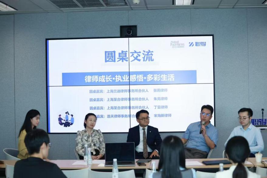 圆桌会谈环节特邀上海兰迪律师事务所合伙人张莉律师、上海至合律师事务所合伙人朱亮律师、上海至合律师事务所合伙人丁雷律师、浩天律师事务所合伙人宋海新律师担任与谈嘉宾,围绕“律师成长”“执业感悟”“多彩生活”三大议题,开展真诚、深入、多维度的交流研讨。