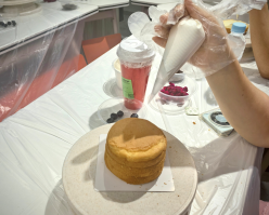 在创作过程中,女律师们专注投入,手持裱花袋,在蛋糕胚上尽情发挥创意。有的选用新鲜的火龙果与蓝莓进行点缀,红白相映,色彩明快;有的则偏爱奥利奥碎的香脆口感,以黑白对比营造视觉层次。现场还备有绿叶与小花等装饰,使每一款蛋糕都成为独一无二的艺术作品。