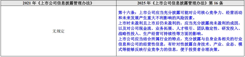 第一,细化风险因素披露。新《信披办法》第16条第1款和第2款要求上市公司充分披露可能对公司核心竞争力、经营活动和未来发展产生重大不利影响的风险因素,尤其是上市时及上市后均未盈利的企业,需详细披露未盈利的成因,以及对现金流、研发投入、业务拓展等方面的影响。此举旨在解决以往风险披露模板化、缺乏动态调整的问题,帮助投资者更全面地评估公司的真实风险,尤其对科技型未盈利企业更具约束力,推动其透明化经营。