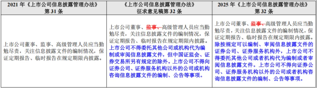 第一,加强对信披“外包”行为的监管。新《信披办法》第32条增加对上市公司信息披露“外包”行为的监管要求,明确规定,“除按规定可以编制、审阅信息披露文件的证券公司、证券服务机构外,上市公司不得委托其他公司或者机构代为编制或者审阅信息披露文件。上市公司不得向证券公司、证券服务机构以外的公司或者机构咨询信息披露文件的编制、公告等事项。”