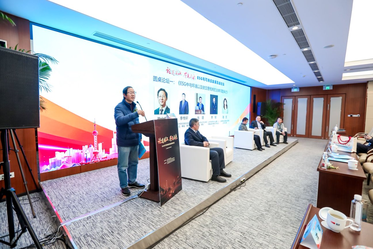 权威专家意见解读后,是两场深度研讨聚焦ESG核心议题。第一场圆桌论坛以《ESG中与环境以及碳交易相关的法律问题探讨》为主题,由上海政法学院经济法学院院长、教授、博士生导师王文革主持,复旦大学法学院党委副书记、教授李传轩,华东政法大学经济法学院教授张璐,上海律协监事、上海理诚律师事务所合伙人李镔,上海聚秀永续碳科技有限公司总经理陆玄,围绕碳交易合规边界、环境损害赔偿机制、绿色技术应用法律保障等议题展开热议,提出了一系列兼具操作性的专业建议。