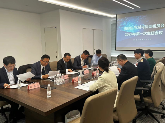 3月15日下午,上海律协应对与协调委员会召开2024年度第一次主任工作会议。会议由应对与协调委主任谭春明主持,上海律协会长邵万权,应对与协调委副主任周知明、陈凯、韩明志、易国勇、张玲、钱军亮参加会议,上海市律师协会秘书长助理、办公室主任陶丽萍列席会议。