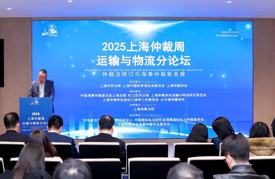 2025年11月20日,“2025上海仲裁周运输与物流分论坛”在虹口区国华金融中心成功举行。论坛以“仲裁法修订与海事仲裁新发展”为主题,汇聚司法行政部门、仲裁机构、海事法院、高校专家、航运企业、保险界及律师界代表,共同探讨仲裁制度现代化与海事争议解决机制创新。